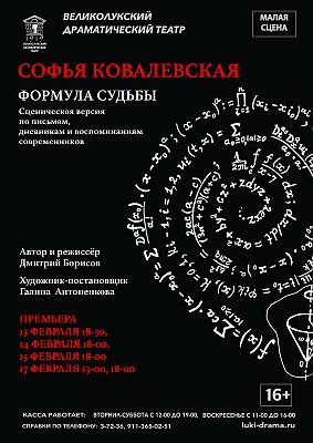 Спектакль о нелегкой судьбе Софьи Васильевны Ковалевской, основан на дневниках, письмах и воспоминаниях современников.